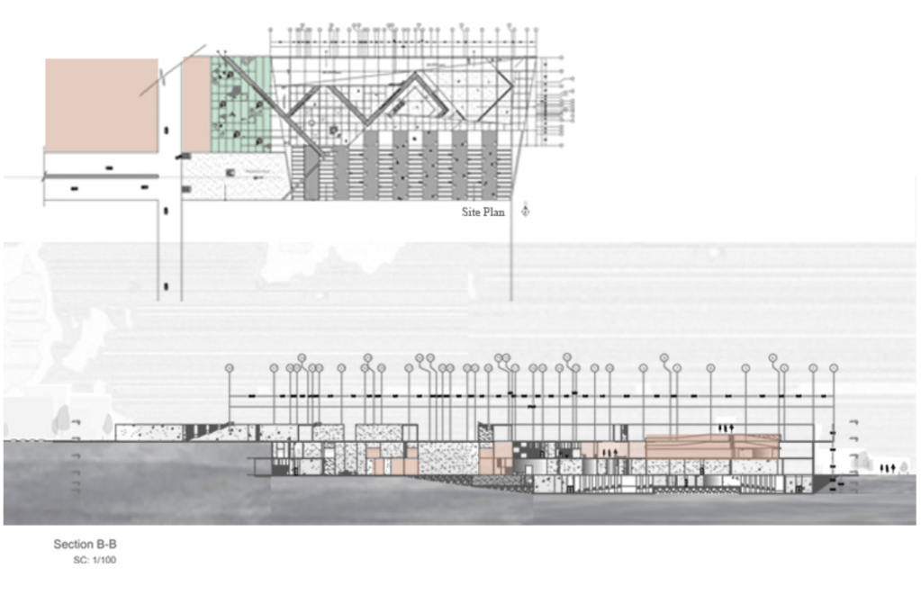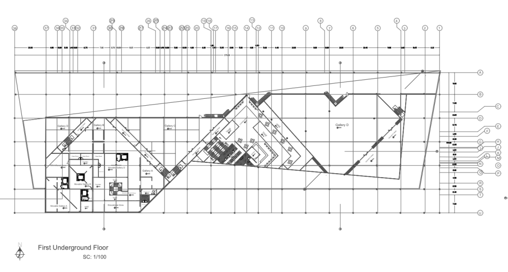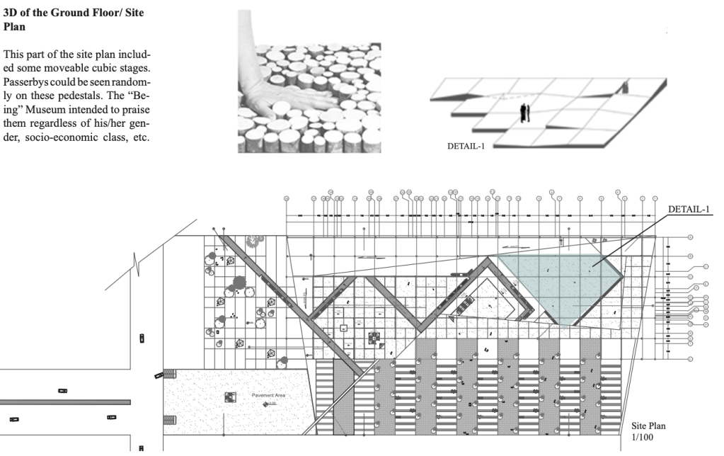 In the “Being” Museum project, I chose to place the building underground, leaving the ground floor open, empty, and accessible to the public. This approach allows part of the project to be redefined by the everyday life of the city. Inspired by architectural phenomenology, visitors can engage with the building through all their senses, experiencing it in a more profound and immersive way.