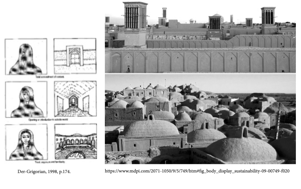 The vernacular architecture of the Middle East was rooted in an “internally-oriented concept” (Der-Grigorian, 1998, p. 174), where the exterior façade facing the street and public space was considered unimportant and treated with humility, while the inner courtyard acted as an ‘open face.’ In contrast, the enclosed interior courtyards of residential units were diverse and functioned as in-between zones, bridging the private (inside) and public (outside) spaces, with a semi-public character (Der-Grigorian, 1998, p. 174).