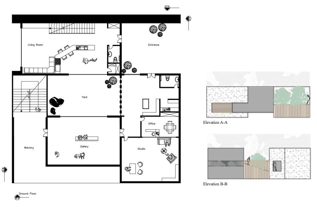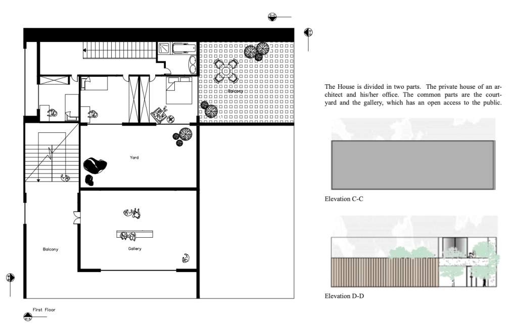 This drawing explores how the traditional concept of the veil can be modernized in relation to architecture. By reinterpreting this cultural element in the context of the conventional courtyard archetype, I sought to transform the morphology of the Iranian house and redefine it as a semi-public form of architecture.